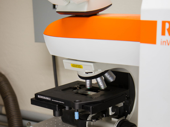The Renishaw InVia is confocal Raman microscope with an automated stage. The system has two different lasers available (514 nm and 785 nm) with three different gratings (1200/2400/3000). It reaches a cm-1 range from 100-4000. It is equipped with both an edge and eclipse filter. 5x/20x/50x objectives are available. This instrument can be used to acquire spectra, depth focus scans, mappings and serial spectra. 4 different databases for spectra identification are available.